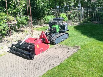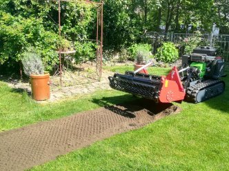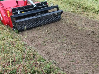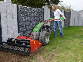 Die Umkehrfräse ist ideal, um steinige Böden und Altrasen zu bearbeiten. Altrasen, Steine und härteste Schollen werden in den Boden eingearbeitet. Schon nach einem Arbeitsgang liegt die Feinerde oben. Steine einsammeln entfällt. Der Zeitgewinn bei der Bodenbearbeitung ist enorm. Da der Antrieb außerhalb der Arbeitsfläche liegt, entstehen keine unbearbeiteten Streifen. Die Arbeitswerkzeuge werfen wie Schaufeln Material gegen die Siebstäbe; grobe Siebfraktion fällt nach unten, feine Siebfraktion fliegt durch das Sieb und wird vom Prallblech wie ein Schleier über das grobe Material gelegt. Die Umkehrfräse schafft in nur einer Überfahrt ein optisch perfektes Ergebnis. Bodenverdichtungen werden beseitigt, Bewuchs wird untergearbeitet. Als Zubehör empfehlen wir Ihnen die Sämaschine zum Aufsatteln. … und LIPCO kann mehr: Außenantrieb Überlastsicherung automatische Kettenspannung Arbeitstiefe ist über eine Krümelwalze einstellbar (max. 14 cm) hydraulische Walzenverstellung möglich hydraulische Antriebe möglich Getriebe mit Rutschkupplung schonen Ihren Einachser